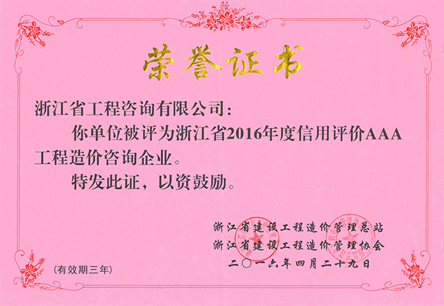 2016年度信用評價AAA工程造價咨詢企業(yè)
