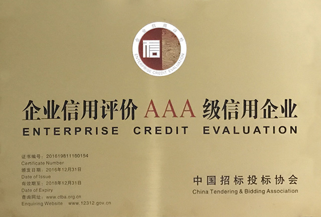 中國招標(biāo)投標(biāo)協(xié)會企業(yè)信用評價AAA級信用企業(yè)