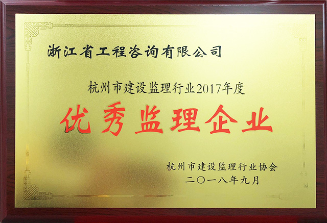 杭州市建設(shè)監(jiān)理行業(yè)2017年度優(yōu)秀監(jiān)理企業(yè)