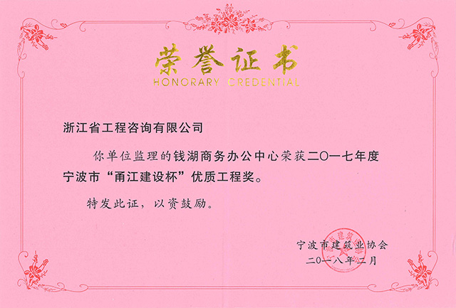 2017年度寧波市”甬江建設(shè)杯“優(yōu)質(zhì)工程獎-錢湖商務(wù)辦公中心
