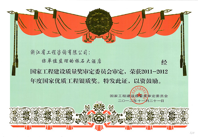 2011-2012年度國家優(yōu)質(zhì)工程銀質(zhì)獎-振石大酒店
