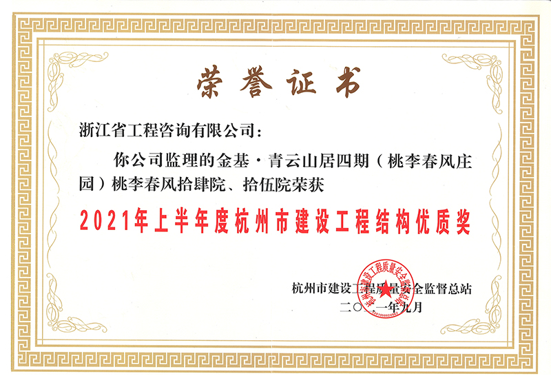 2021年上半年度杭州市建設(shè)工程結(jié)構(gòu)優(yōu)質(zhì)獎-金基·青云山居四期(桃李春風(fēng)莊園)桃李春風(fēng)拾肆院、拾伍院