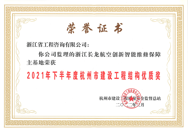 2021年下半年度杭州市建設(shè)工程結(jié)構(gòu)優(yōu)質(zhì)獎-浙江長龍航空創(chuàng)新智能維修保障主基地