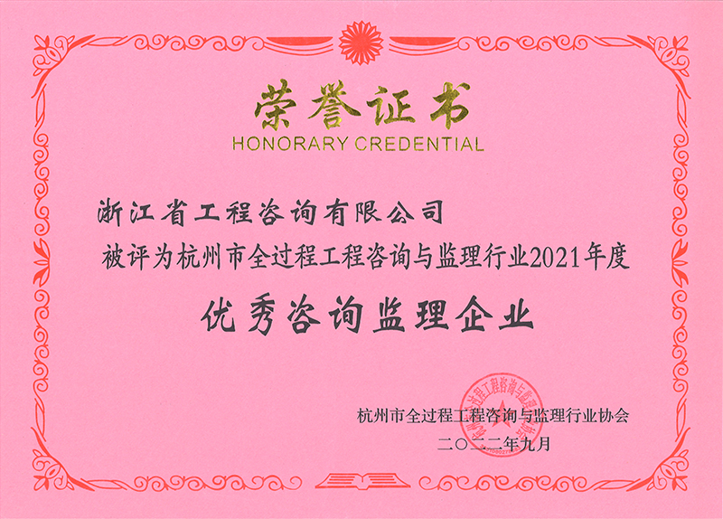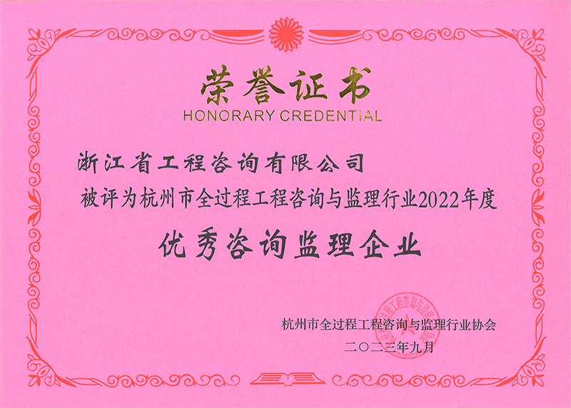 杭州市全過程工程咨詢與監(jiān)理行業(yè)2022年度優(yōu)秀咨詢監(jiān)理企業(yè)