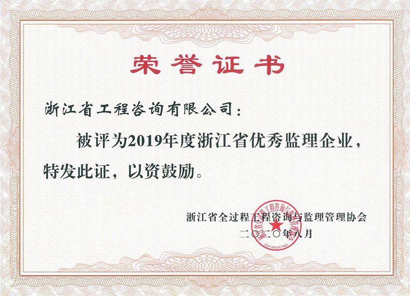 我公司再次被評(píng)為浙江省優(yōu)秀監(jiān)理企業(yè),虞圣鳳同志被評(píng)為浙江省優(yōu)秀總監(jiān)理工程師,陶建松同志被評(píng)為浙江省優(yōu)秀監(jiān)理工程師。