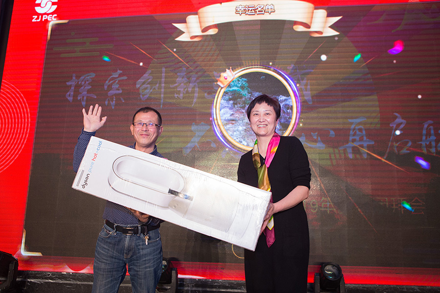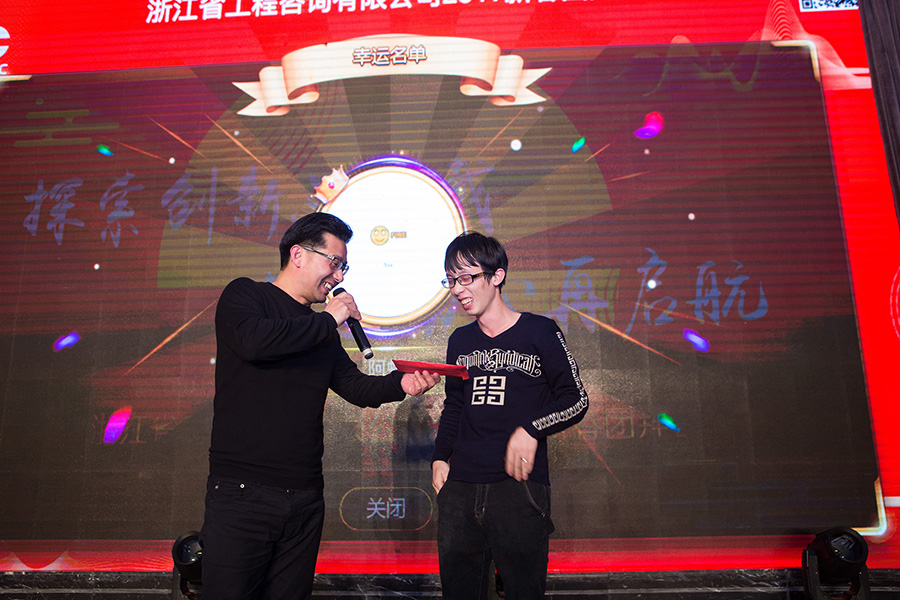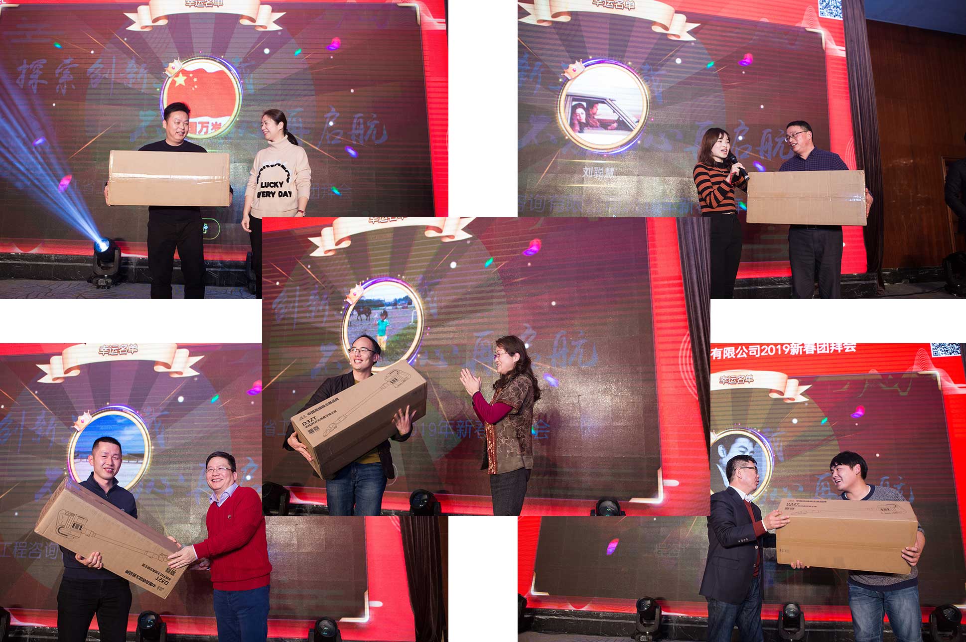 除了精彩紛呈的節目表演,最激動人心的莫過于抽獎了。今年抽獎采用微信抽獎方式,共將抽取特等獎1名,一等獎5名,二等獎20名,三等獎50名,集團公司領導還帶來了神秘大獎。幸運兒們個個抱著獎品滿載而歸。