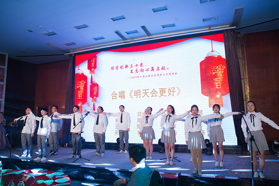 最后,在大合唱《明天會更好》的歌聲中,團拜會圓滿落下帷幕,整臺晚會,精彩紛呈,處處洋溢歡歌笑語。2019年公司全體員工將繼續用熱忱與堅韌,真誠與執著,書寫新年新篇,相信浙咨的明天會更好。