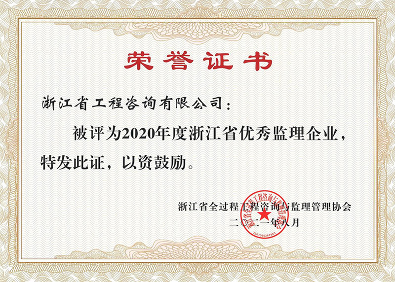 近日,根據(jù)《關(guān)于評選2020年度浙江省優(yōu)秀監(jiān)理企業(yè)和優(yōu)秀總監(jiān)理工程師、優(yōu)秀監(jiān)理工程師的通知》(浙咨監(jiān)協(xié)[2021]11號文)的要求,經(jīng)企業(yè)統(tǒng)一申報(bào),浙江省全過程工程咨詢與監(jiān)理管理協(xié)會(huì)組織專家和評委會(huì)進(jìn)行評審,56家企業(yè)評為省優(yōu)秀監(jiān)理企業(yè)、323人評為省優(yōu)秀總監(jiān)理工程師、327人評為省優(yōu)秀監(jiān)理工程師。我公司再次被評為浙江省優(yōu)秀監(jiān)理企業(yè),金利華和湯金明兩位同志被評為優(yōu)秀總監(jiān)理工程師。