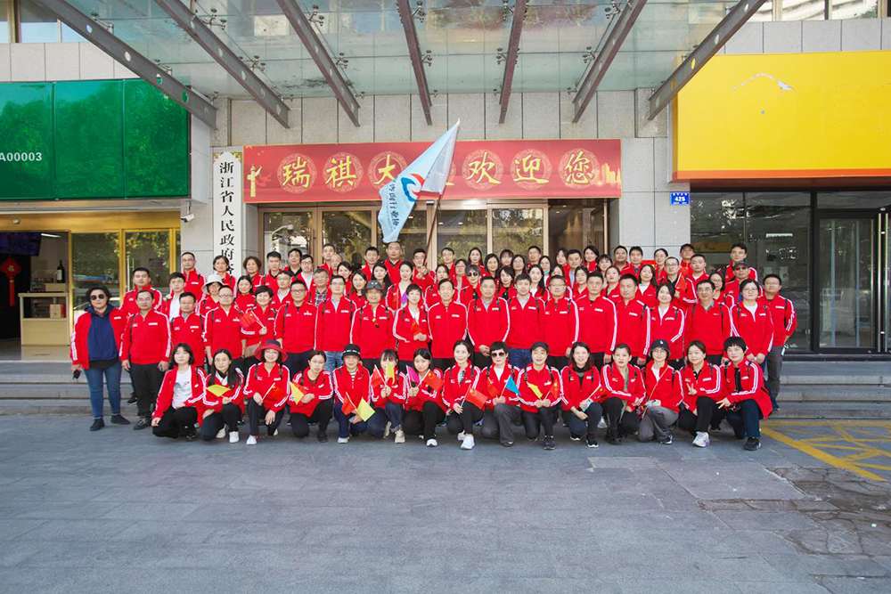 參與活動的全體人員,在瑞祺大廈集合,著統(tǒng)一服裝,列隊拍攝合影。在劉亭會長發(fā)出“浙江省工程咨詢行業(yè)協(xié)會第五屆京杭大運河健步走活動快樂出發(fā)”的指令后,活動正式開始。