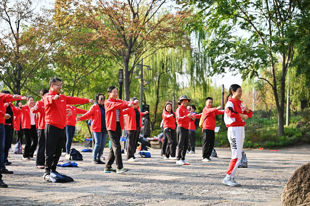 在協(xié)會領(lǐng)導(dǎo)的帶領(lǐng)下,大家井然有序,沿著大運河北上,穿過霞灣橋,途經(jīng)富義倉、大兜路歷史文化街區(qū)及青莎公園,沿途沐浴著溫暖的秋日陽光,飽覽千年京杭大運河的風(fēng)光旖旎,享受著健康運動帶來的身心快樂。在北新關(guān)碼頭,大家進行了豐富多彩的團建趣味互動活動。