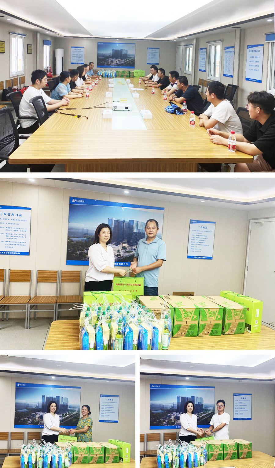 慰問代表團(tuán)一行還實(shí)地查看了各工程的施工進(jìn)展情況,并聽取了各項(xiàng)目負(fù)責(zé)人的工作匯報(bào),就項(xiàng)目實(shí)際存在的問題進(jìn)行了深入的交流。一句句貼心的話語、一件件暖心的慰問,不僅在炎炎夏日里給奮戰(zhàn)在一線的工作人員帶來了絲絲清涼,更讓堅(jiān)守一線的大家備受鼓舞。大家紛紛表示將立足崗位,奮戰(zhàn)高溫,以最好的狀態(tài)投入到緊張的工作中去,保證各項(xiàng)工作任務(wù)順利完成。