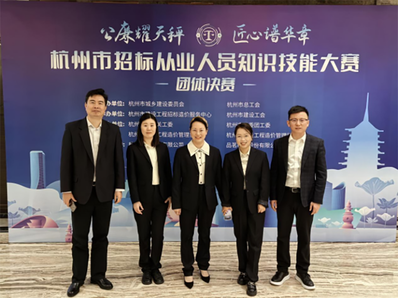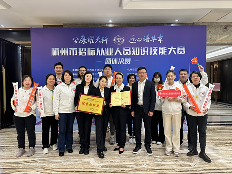 2023年11月28日下午,杭州市招標從業人員“公廉耀天秤 匠心譜華章”知識技能大賽團隊決賽圓滿落下帷幕。本次大賽由杭州市城鄉建設委員會、杭州市總工會主辦,杭州市建設工程招標造價服務中心、杭州市建設工會承辦,杭州市建設工程造價管理協會等單位協辦。本屆招標從業人員知識技能大賽是首次針對全市招標從業人員舉辦的知識技能大賽,分為個人賽和團體賽兩個階段。杭州市共有131家企業1433名造價從業人員報名參賽。在11月14日舉辦的個人決賽中,200名選手為個人而戰、為團體而戰,經過激烈角逐,我公司從眾多參賽企業中脫穎而出,成為參加團體決賽的十家企業之一。