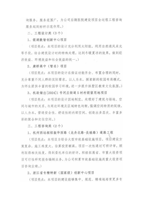 在過去的一年中,公司承接并完成了多個重大工程項目,涵蓋了工程建設多個領域。這些優秀項目的成功,不僅展現了公司強大的專業技術實力和項目管理能力,更體現了全體員工追求卓越、精益求精的職業精神。