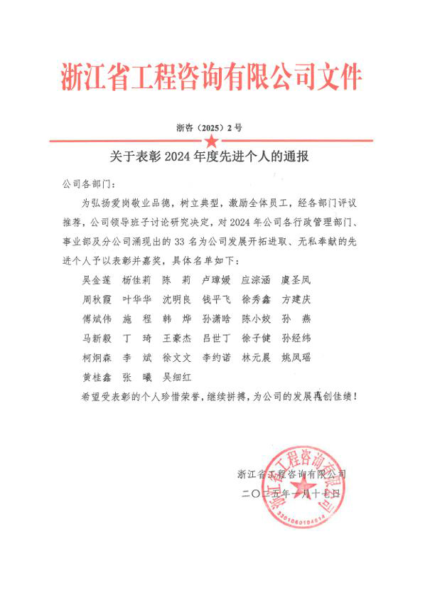 2025年1月,公司領導班子對各部門上報的2024年度優秀項目及先進個人候選名單進行了評選,最終評選出了24個優秀項目和33名先進個人。此次表彰不僅是對優秀成果的肯定,更是對全體員工辛勤付出的激勵與鼓舞。