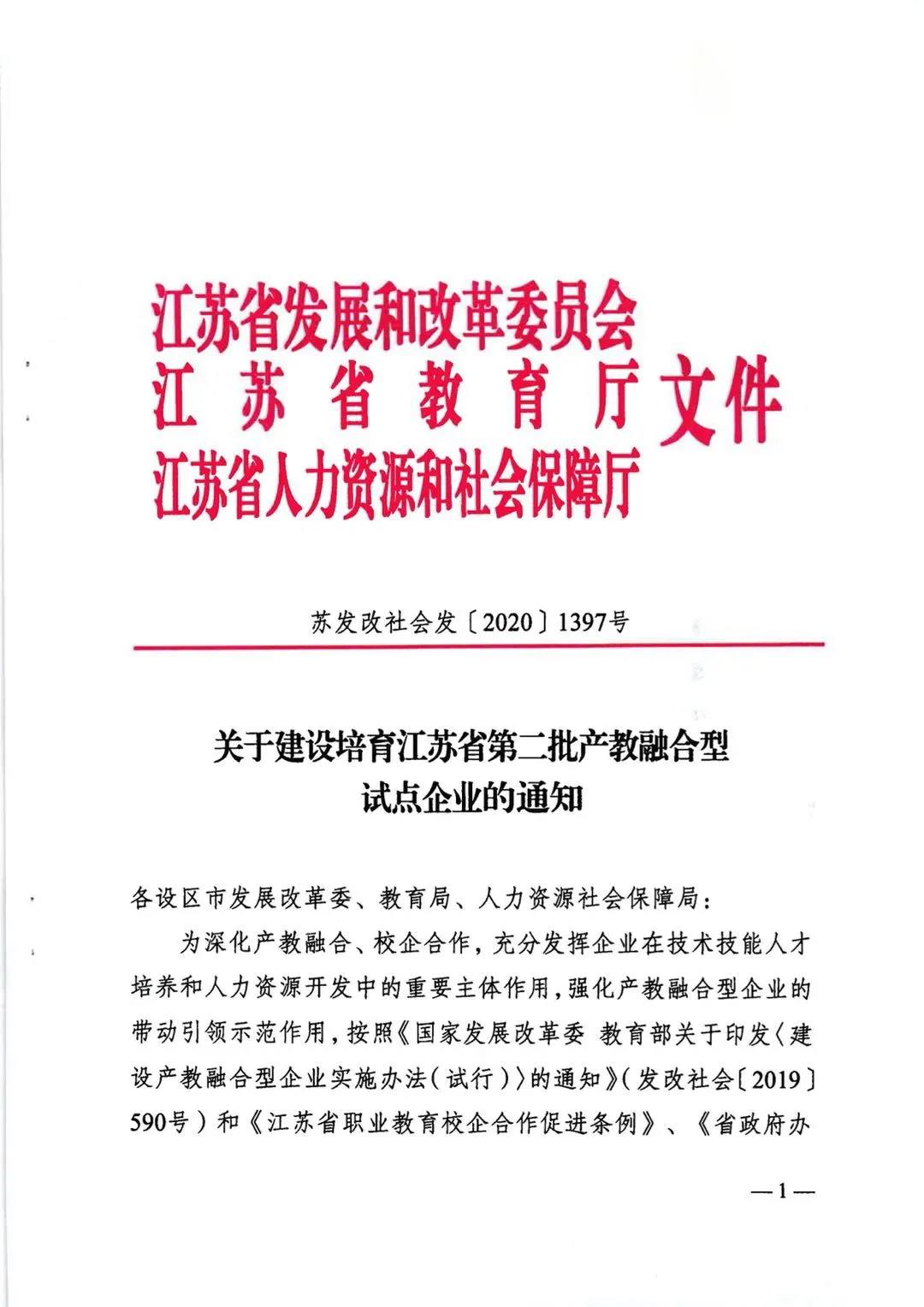 為深入貫徹黨的十九大和全國教育大會精神,推進職業教育改革,完善職業教育和培訓體系,深化產教融合、校企合作,充分發揮企業在技術技能人才培養和人力資源開發中的重要主體作用,強化產教融合型企業的帶動引領示范作用,根據《國務院關于印發國家職業教育改革實施方案的通知》(國發〔2019〕4號)等要求,江蘇省發展改革委、省教育廳、省人力資源社會保障廳面向全省開展產教融合型企業建設培育試點工作。