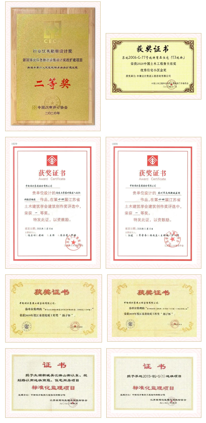 2020年,中衡設(shè)計(jì)集團(tuán)繼續(xù)創(chuàng)優(yōu)爭(zhēng)優(yōu),積極參與省市各級(jí)評(píng)優(yōu)工作,共獲得省部級(jí)以上獎(jiǎng)項(xiàng)115項(xiàng)。