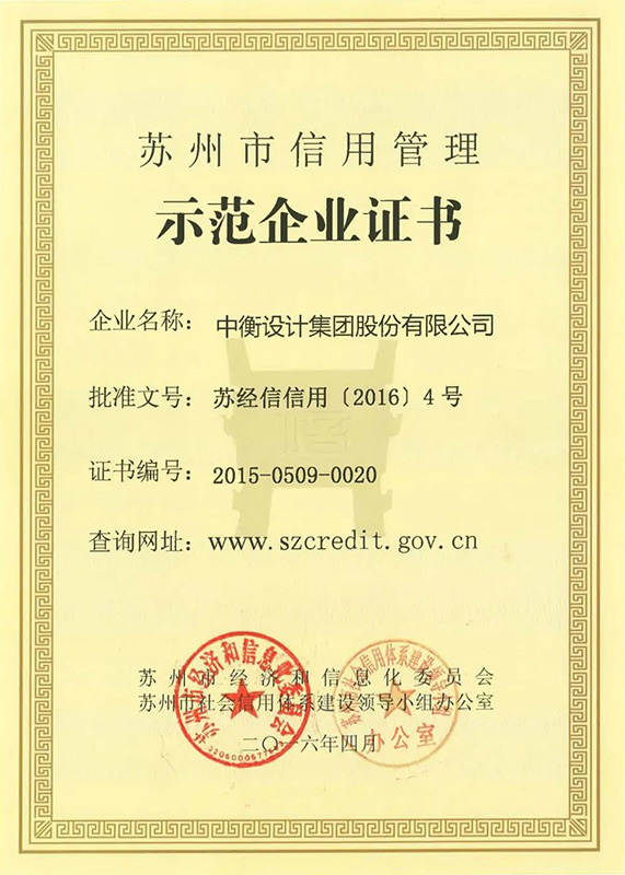 多年來,中衡設計堅守誠信經營理念,秉承“敬誠共創”的價值觀:敬業,誠信,共贏,永遠在路上的創新創業精神,在質量管理、產品服務、客戶信息信用管理、創新科研、人才培養、勞動保障等方面均取得長足的發展,多次榮獲江蘇省勘察設計行業誠信單位、蘇州市信用管理示范企業、蘇州市服務業名牌、“蘇州市勞動和諧企業”“AAAAA級勞動保障信用單位”等榮譽。以此次獲評A級為契機,中衡設計集團將繼續誠信經營、綜合發展,為營造公平競爭的市場環境和高質量的發展成果貢獻自己的力量。