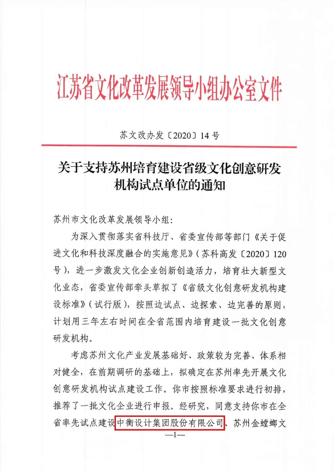 △ 關(guān)于同意中衡設(shè)計等企業(yè)建設(shè)省級文化創(chuàng)意研發(fā)機構(gòu)試點單位的通知