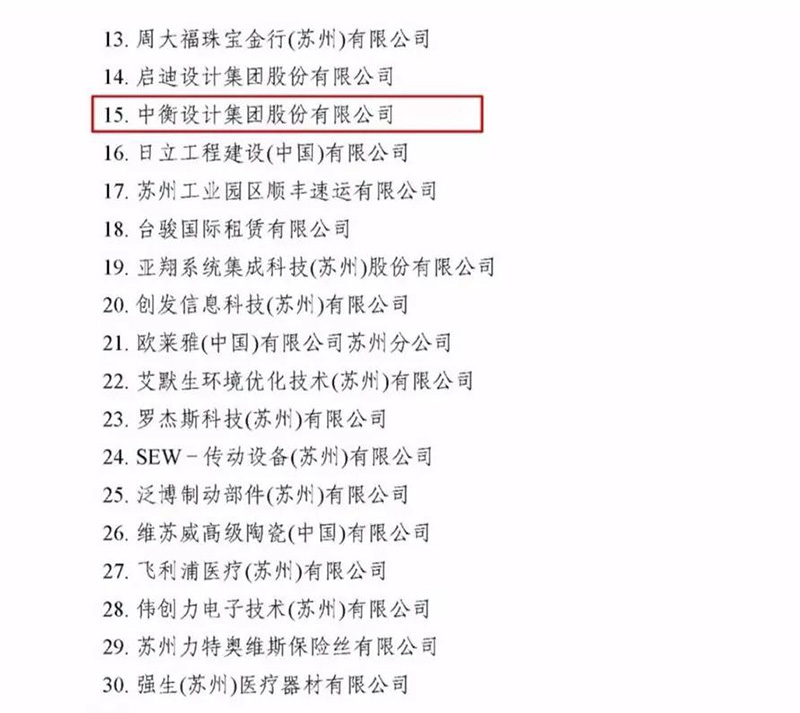 其中“2018年度經濟貢獻突出獎(營收增長)”大獎,以表彰中衡設計2018年營收快速增長對園區GDP增長做出的貢獻,中衡設計也是唯一上榜的工程技術服務企業。同時獲得此殊榮的還有蘇州三星顯示公司、博世汽車部件(蘇州)有限公司、三星電子(蘇州)半導體有限公司、康普通訊技術(中國)有限公司、飛利浦醫療(蘇州)有限公司、康寶萊(中國)保健品有限公司、卡特彼勒(蘇州)物流有限公司等國際著名公司。