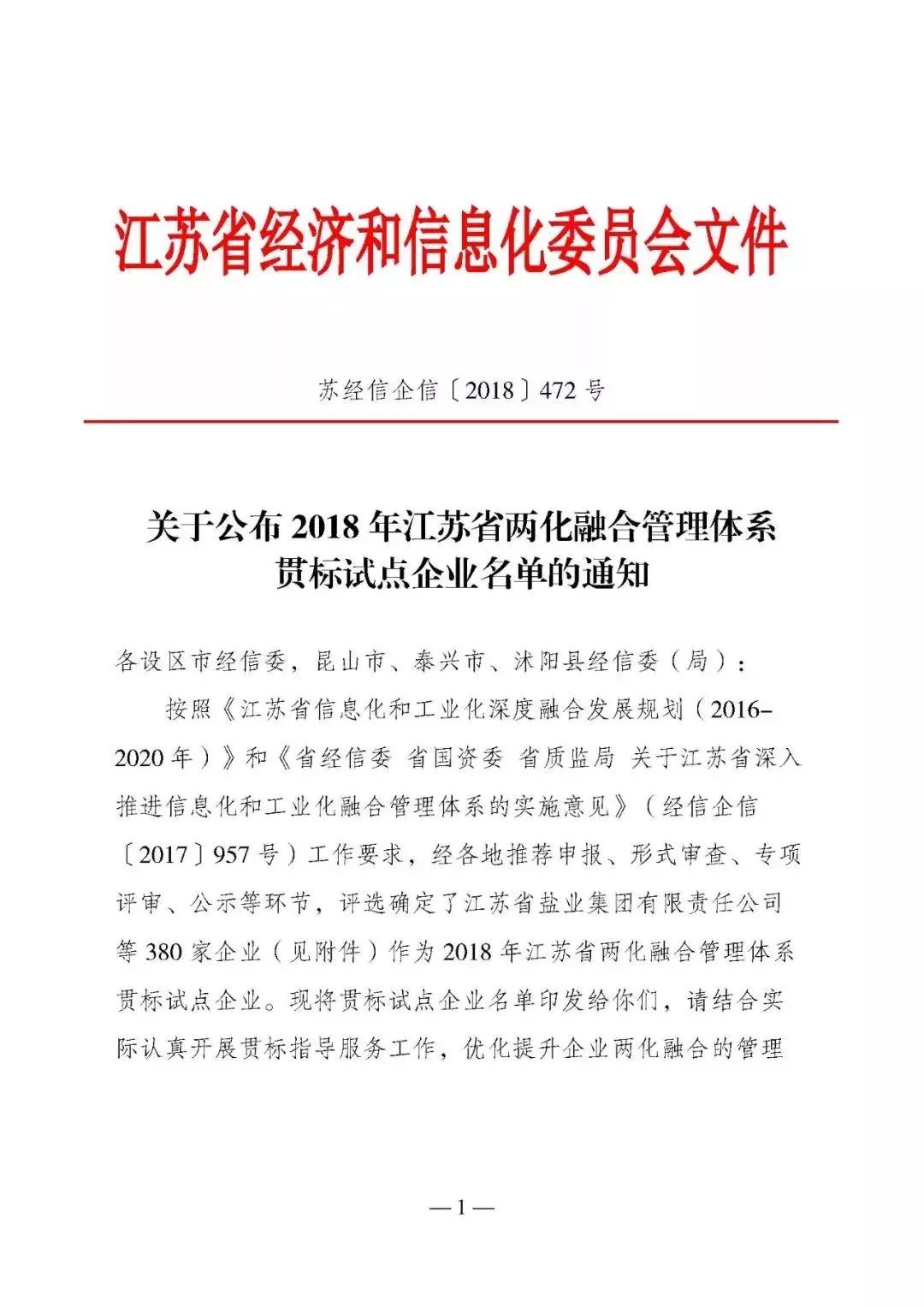 此外,中衡設計集團還被江蘇省經信委(現江蘇省工信廳)認定為江蘇省兩化融合體系貫標試點企業。據了解,中衡設計集團是國內第二家、江蘇省第一家通過兩化融合管理體系貫標的建筑設計企業。