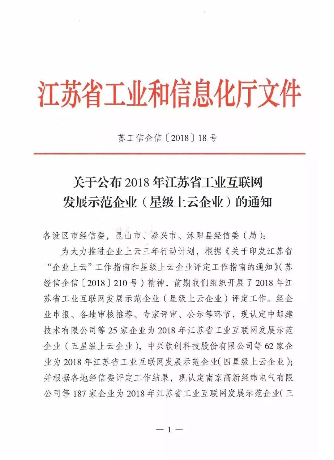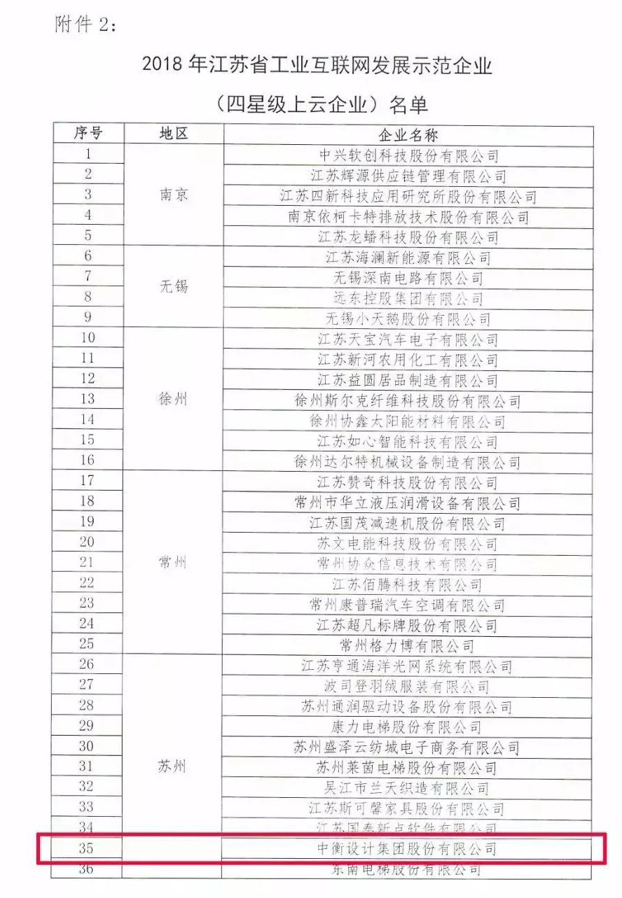 中衡設計被認定為2018年江蘇省工業互聯網發展示范企業(四星級上云企業)