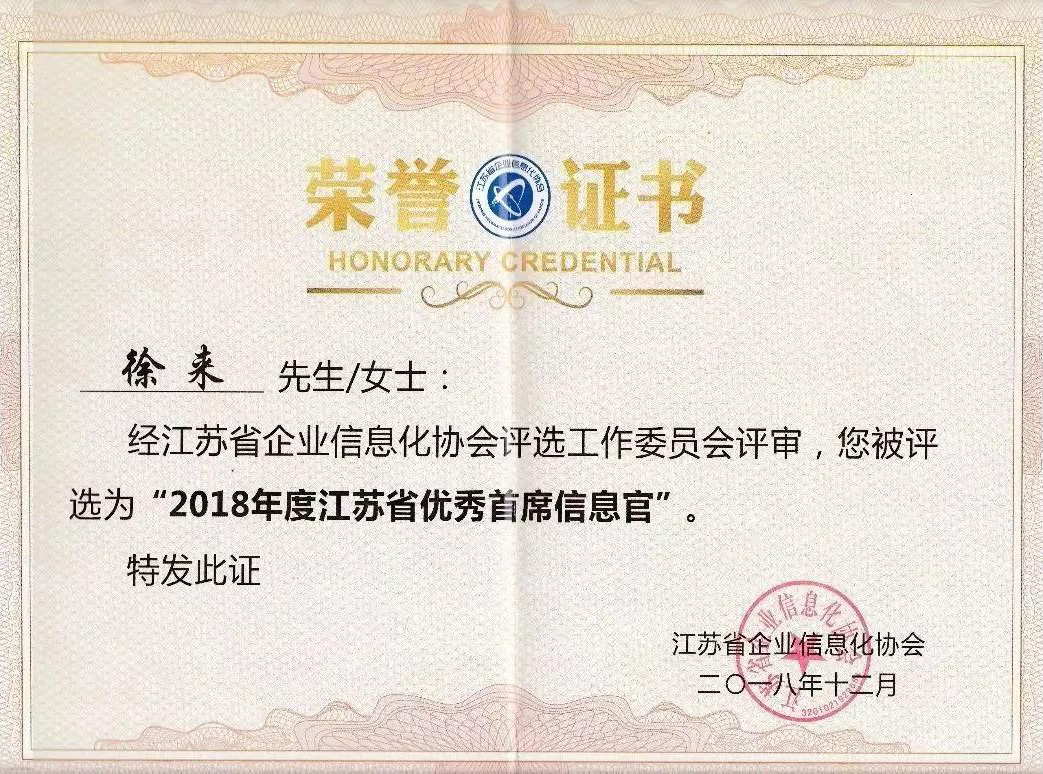 徐來獲得2018年度“江蘇省優秀信息官”稱號