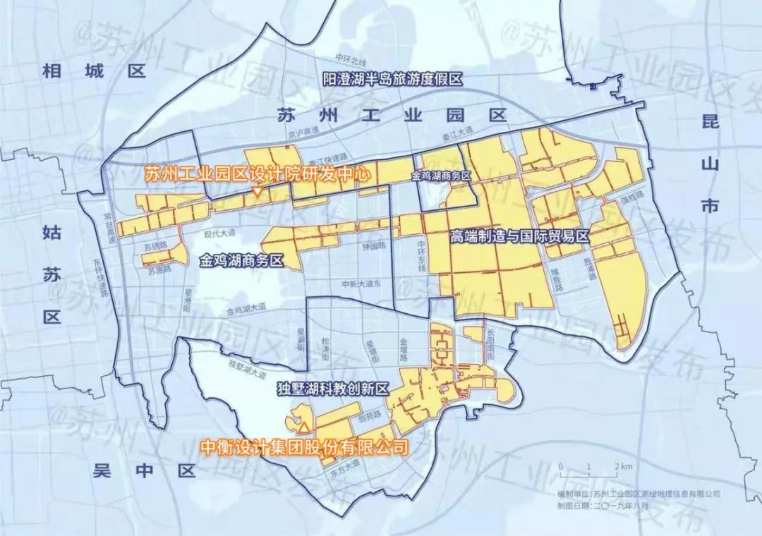 根據國務院發布的總體方案,江蘇自貿區的實施范圍 119.97 平方公里,涵蓋南京、蘇州、連云港三個片區,將重點打造成為開放型經濟發展先行區、實體經濟創新發展和產業轉型升級示范區。其中蘇州自貿片區60.15平方公里(含蘇州工業園綜合保稅區5.28平方公里),位于蘇州工業園區,涵蓋了高端制造與國際貿易區、獨墅湖科教創新區、金雞湖商務區、陽澄湖半島旅游度假區等功能區的核心區域。其中,中衡設計集團位于獨墅湖科教創新區的中衡設計大廈(即目前集團公司總部所在地),及集團位于金雞湖商務區的原蘇州工業園區研發中心辦公大樓(目前由世界五百強德國博世集團租用作其研發中心)都位于蘇州自貿區核心區域。
