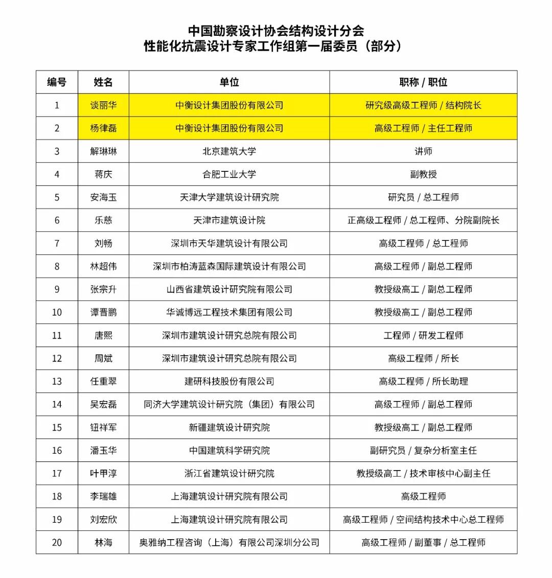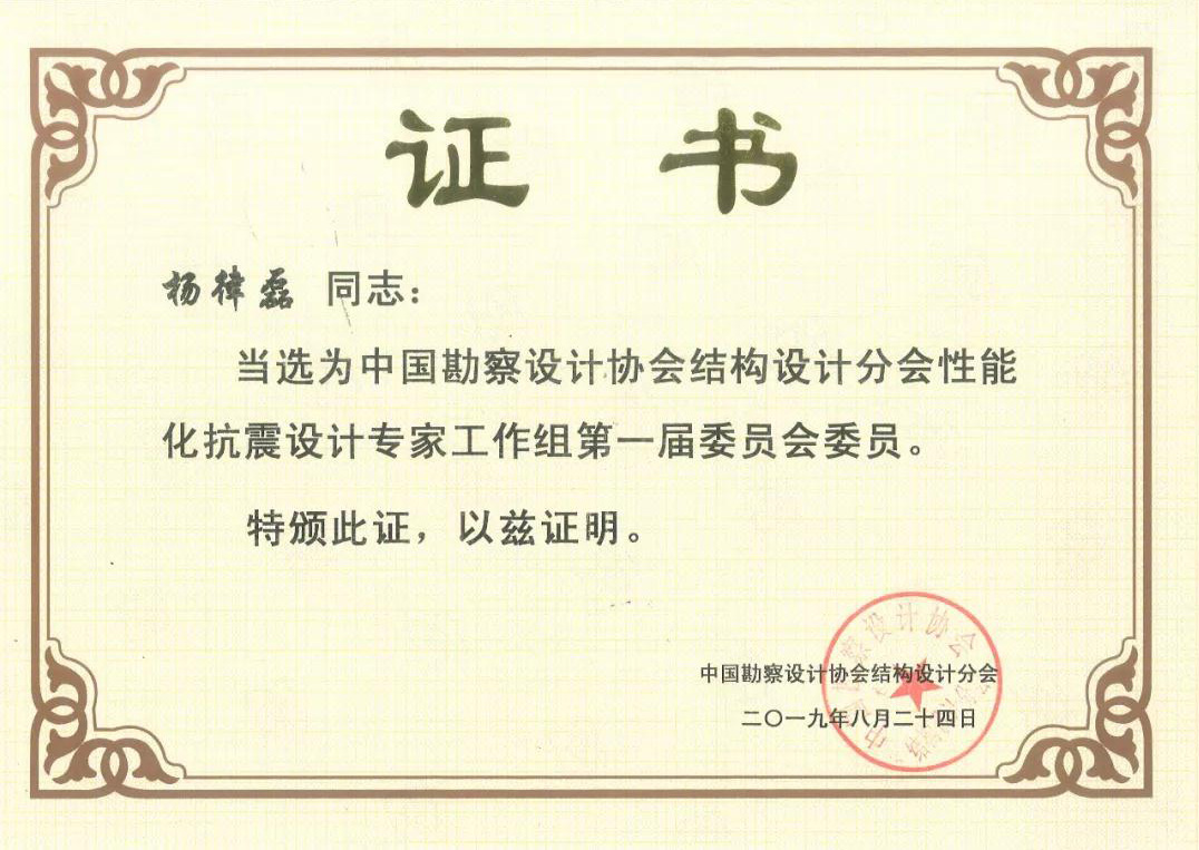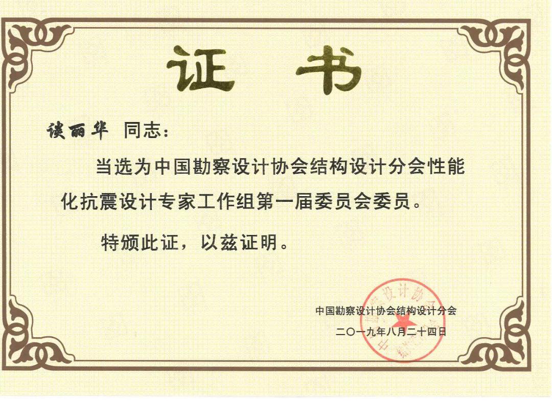 中國勘察設計協會結構設計分會性能化抗震設計專家工作組于2018年6月13日在上海成立,宗旨是通過對性能化抗震設計技術進行推廣、發展和促進,提高廣大結構設計人員對性能化抗震技術的認識和設計水平,增強工程應用的主動性和積極性,提高性能化抗震技術在重大工程建設中的積極作用,確保人民生命和財產安全。